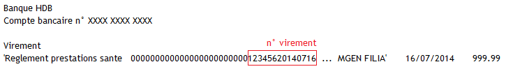 et le n° virement d'un règlement de la mutuelle en votre faveur.
